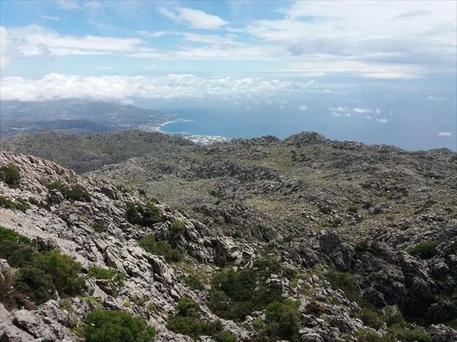 Le top de la semaine ! Un des hauts sommets de Crète, et une rando exigeante de 20 kilomètres et 1400m de dénivelée (possibilité de se garer un peu plus haut quand même) dans la chaleur précoce du printemps. Une première phase dans une vallée verte et calme, puis l’attaque dans les cailloux, une longue crête (normal en Crète, ah ah) toute en montée, puis l’ascension finale du Kastro.